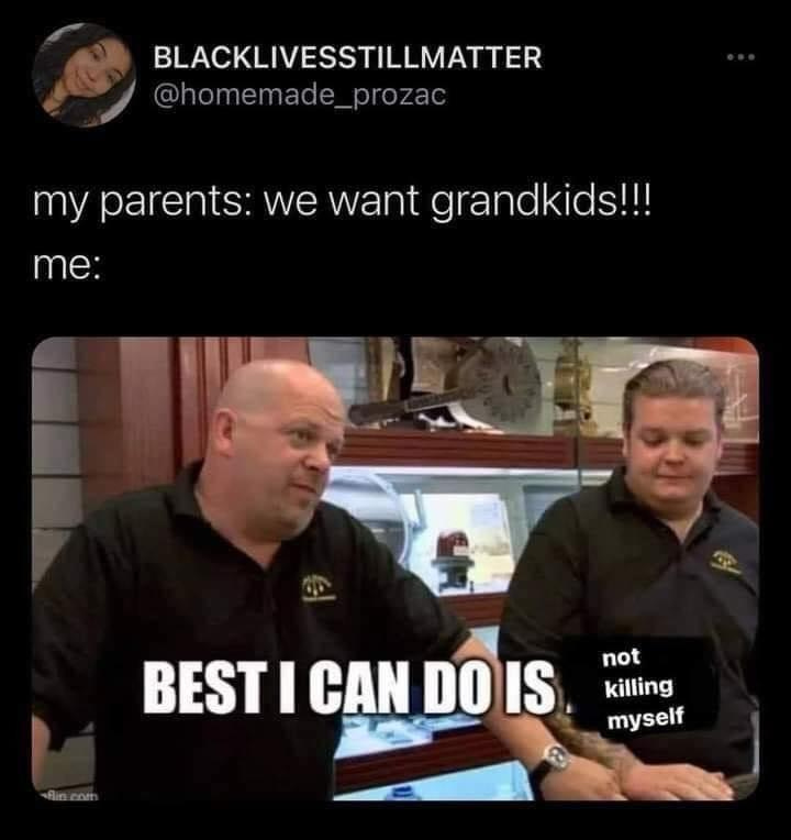 So for me, it’s felt like a full-circle emotional blackmail: I was brought into existence against my will by two people’s self-serving choice, and now I’m expected to stay alive for their sake.